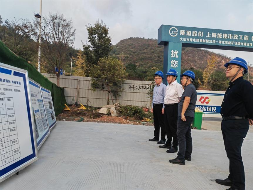 在大冶市绿电绿氢制储加用一体化氢能矿场综合建设项目(大冶东智慧能源站)的建设现场,作为大冶市氢能项目建设指挥部顾问,永利官网经管学院副院长石璋铭向张方胜一行详细介绍了依托于大冶市的国家绿色低碳氢能创新应用示范项目,表示积极推进氢能制、储、输、用全产业链布局,对优化能源结构,构建多源绿色、清洁低碳、安全高效的现代能源体系具有重要意义。