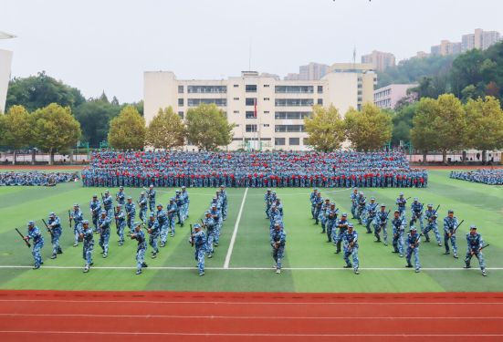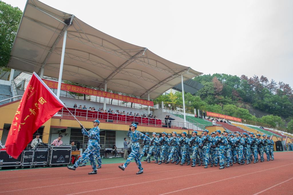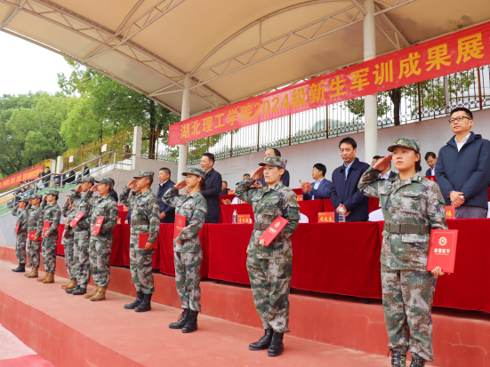 2024级新生军训成果展示在军事训练教官的主持下有条不紊进行。各学院代表方阵进行了分列式表演。众方阵整齐划一,步调坚定,神情肃穆向主席台致敬,口号声响彻云霄,展现出了磅礴的气势,赢得阵阵喝彩。女子匕首操、刺杀操、战术演练、长征战歌等特色方阵表演依次进行。表演者们英姿飒爽,气宇轩昂,动作利落干脆,舞姿矫健有力,一招一式尽显湖理校子风采,精彩的表演瞬间点燃了现场的气氛。