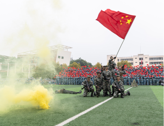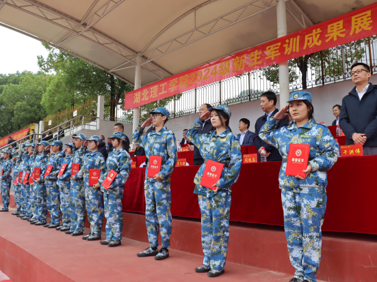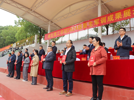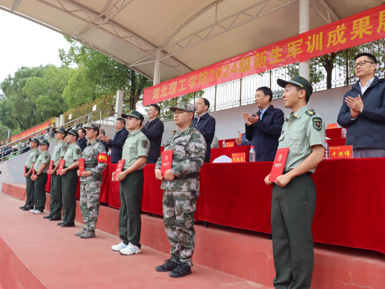 表演结束后,校领导分别为新生军事训练优胜单位、优秀教官、优秀区队长、优秀辅导员、优秀学员颁奖,并合影留念。