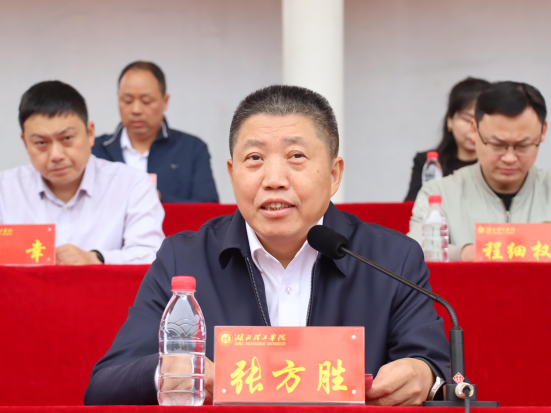 党委书记张方胜代表学校党委、行政,向承担本次军训任务的全体教官表示感谢,向为军训工作辛勤付出的校武装部、14个教学院工作人员表示亲切的慰问,向取得优异成绩获得表彰的老师、同学们表示热烈的祝贺。张方胜指出,同学们的分列式方阵步履铿锵、气势恢宏;刺杀操和匕首操方阵灵动如风、意气风发;长征战歌与战术演练方阵身形矫健、勇往直前,将理工学子的风采展现得淋漓尽致。14天的训练,尽管让同学们皮肤晒黑了,但也让大家的眼神却变得更加坚毅有力。在祝贺新生们的同时,张方胜还对全体新生提出三点希望:一是希望同学们“立正”青春,胸怀家国立壮志,认真学习党史,感悟信仰力量,传承红色基因,赓续红色血脉,将个人理想追求与国家的发展、民族的复兴紧密结合起来,自觉将自己的小我融入祖国和人民的大我之中,树立为祖国为人民永久奋斗、赤诚奉献的坚定理想,时刻保持“立正”的姿态,挺起胸膛,以实际行动践行强国有我的青春誓言,在推进中国式现代化的伟大进程中建功立业,贡献青春力量。二是希望同学们以学为基,敢为人先“向前看”,树牢强国之志,珍惜韶华、不负青春,努力学习掌握科学知识,提高内在素质,锤炼过硬本领,始终保持“向前看”的勇气和决心,弘扬“艰苦创业、自强不息、敢为人先、开放创新”的理工精神,将在军训中锤炼出的坚韧不拔、团结协作、勇于担当的精神品质融入今后的学习和生活中去,努力使自己成长为德智体美劳全面发展的社会主义建设者和接班人,在中国式现代化湖北实践中挺膺担当,书写青春华章。三是希望同学们砥砺奋进,昂首阔步“齐步走”,与学校共奋进,实践报国之行,怀揣理想,勇敢跳出自我“舒适区”,昂首阔步“齐步走”, 让青春在“自找苦吃”中拔节成长,在以中国式现代化全面推进强国建设、民族复兴新征程中,绽放青春光彩。