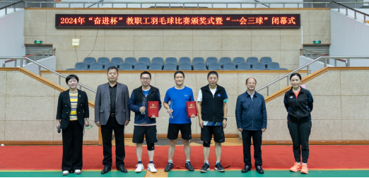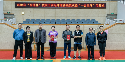 校党委书记张方胜、党委副书记李金奇、副校长冯运仿出席颁奖仪式并为获奖代表队颁发奖杯及荣誉证书。校工会常务副主席张林仙宣读比赛获奖结果。各代表队领队、教练、全体运动员、裁判员和工作人员参加颁奖仪式,校工会副主席龚斌主持仪式。颁奖仪式结束后,由机关、教学院明星联队与体育部教练组展开了一组友谊赛,大家进一步切磋羽毛球技艺、增进友谊、提升凝聚力。
