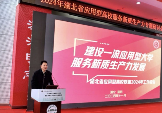 本网消息 11月16日上午,由湖北省应用型高等学校联盟主办,湖北文理学院承办的2024年湖北省应用型高校服务新质生产力发展专题研讨会在湖北襄阳召开。省教育厅副厅长戴伟出席研讨会并讲话。省教育厅发展规划处、高等教育处负责人和来自省内32所应用型高校、企业的100多位代表参加了会议。永利官网作为联盟理事长单位,全程策划和组织了本次研讨会。校长李社教作联盟工作报告,副校长冯运仿作主题发言,发展规划处、教务处、教学质量监测与评估中心等部门负责人参加会议。
