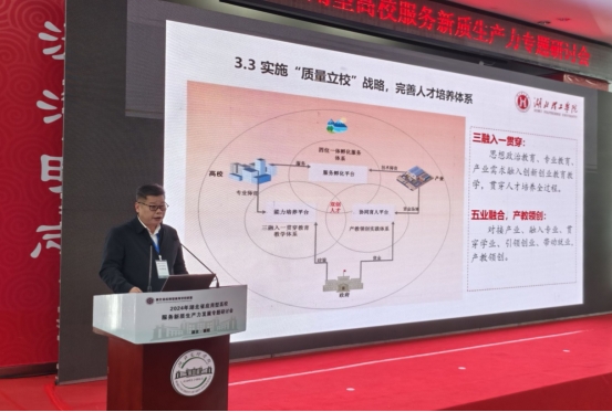 安徽省应用型本科高校联盟秘书长、合肥大学发展规划处处长宋海峰作题为《坚持办学定位保持特色发展》的专题讲座。宋海峰结合合肥大学的办学历程和特色定位,介绍了合肥大学通过持续发力、加强对外交流合作等方面的努力,推动应用型大学高质量发展,提升应用型大学服务新质生产力发展能力的经验。