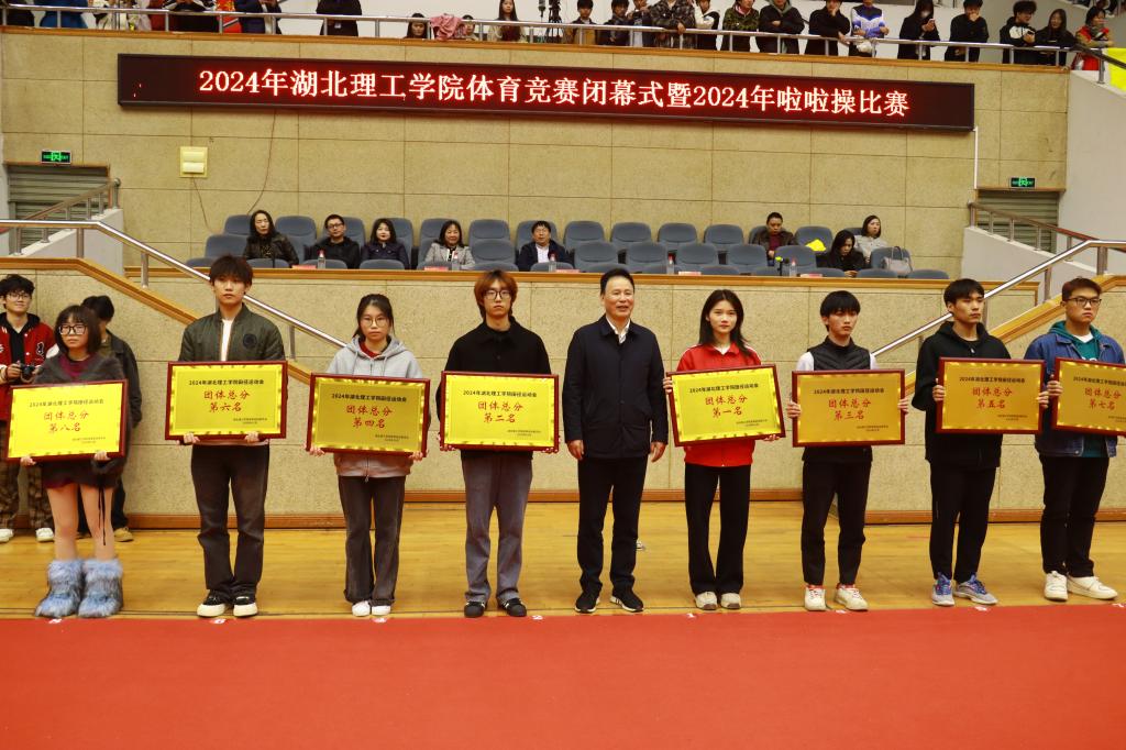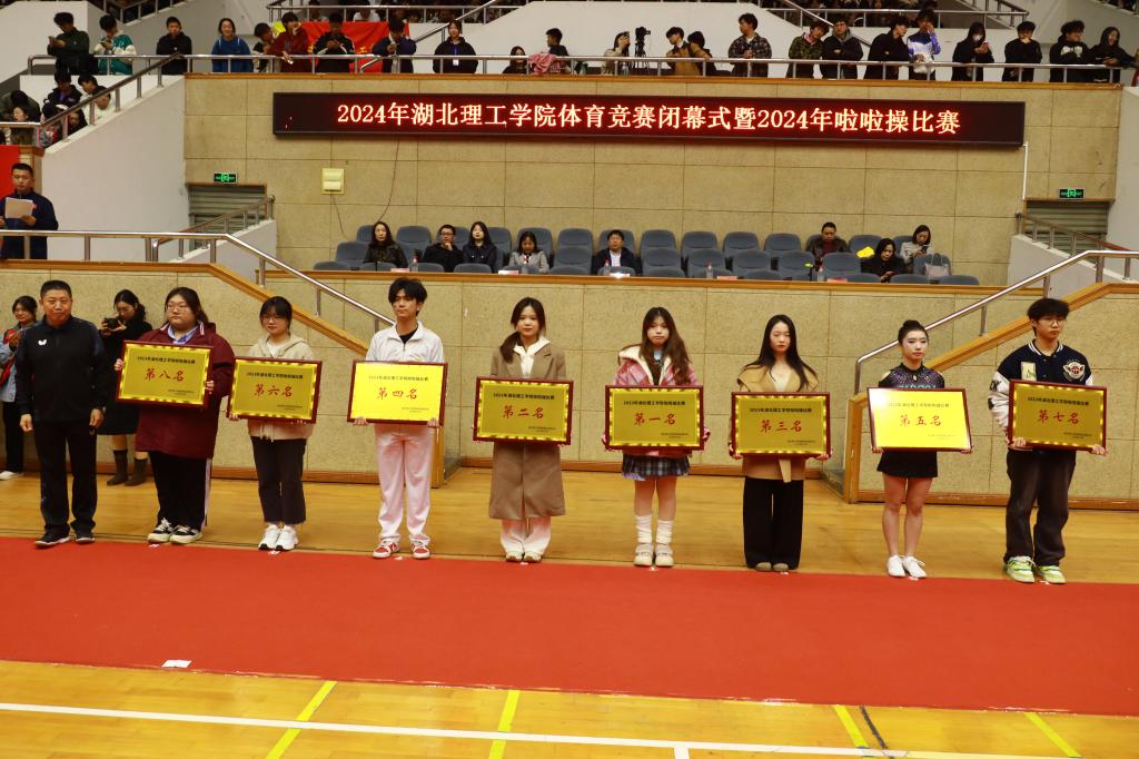 在2023年啦啦操比赛中获得前八名的单位依次是艺术学院、医学院、师范学院、土木建筑工程学院、经济与管理学院、数理学院、材料科学与工程学院、化学与化工学院。张方胜为获奖学院颁奖。