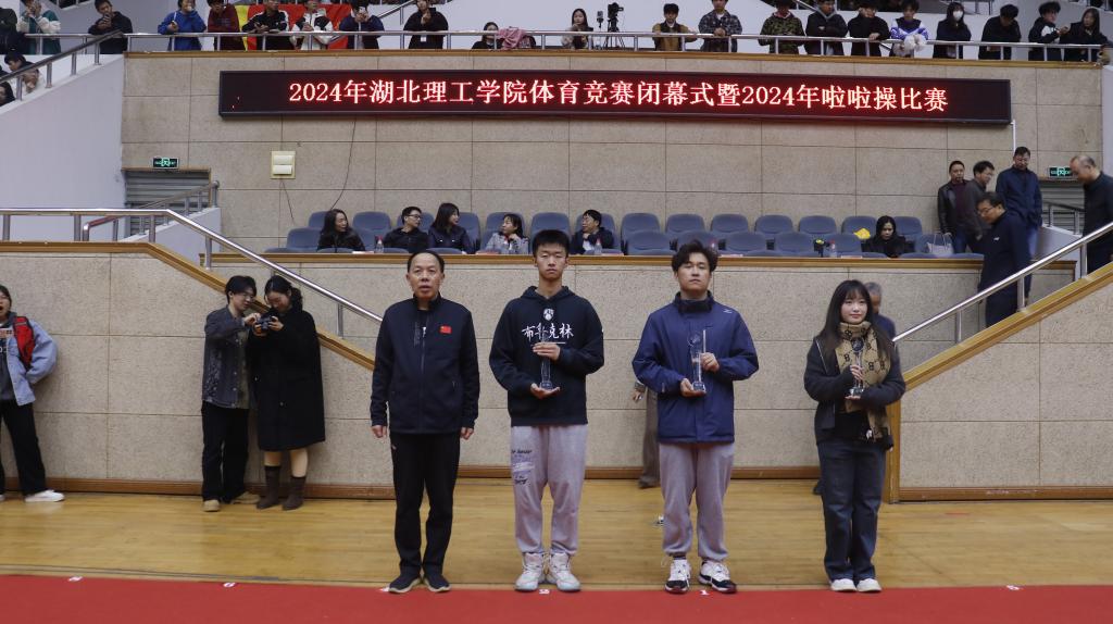 涂立桥宣读《关于表扬2024年永利集团88304官网体育竞赛获奖集体和个人的决定》。校领导为各项赛事获奖单位和个人颁奖。