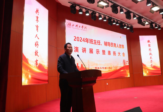 本网消息 11月27日下午,2024年班主任、辅导员育人故事演讲展示暨表扬大会在学术交流中心208顺利举行。校长李社教出席大会并讲话。组织部、宣传部、统战部、团委、人事处、教务处、招生就业工作处、工会负责人,各教学院党总支部副书记、全体辅导员及学生代表、学工部全体人员参加活动。活动由王一洋、夏仪主持。