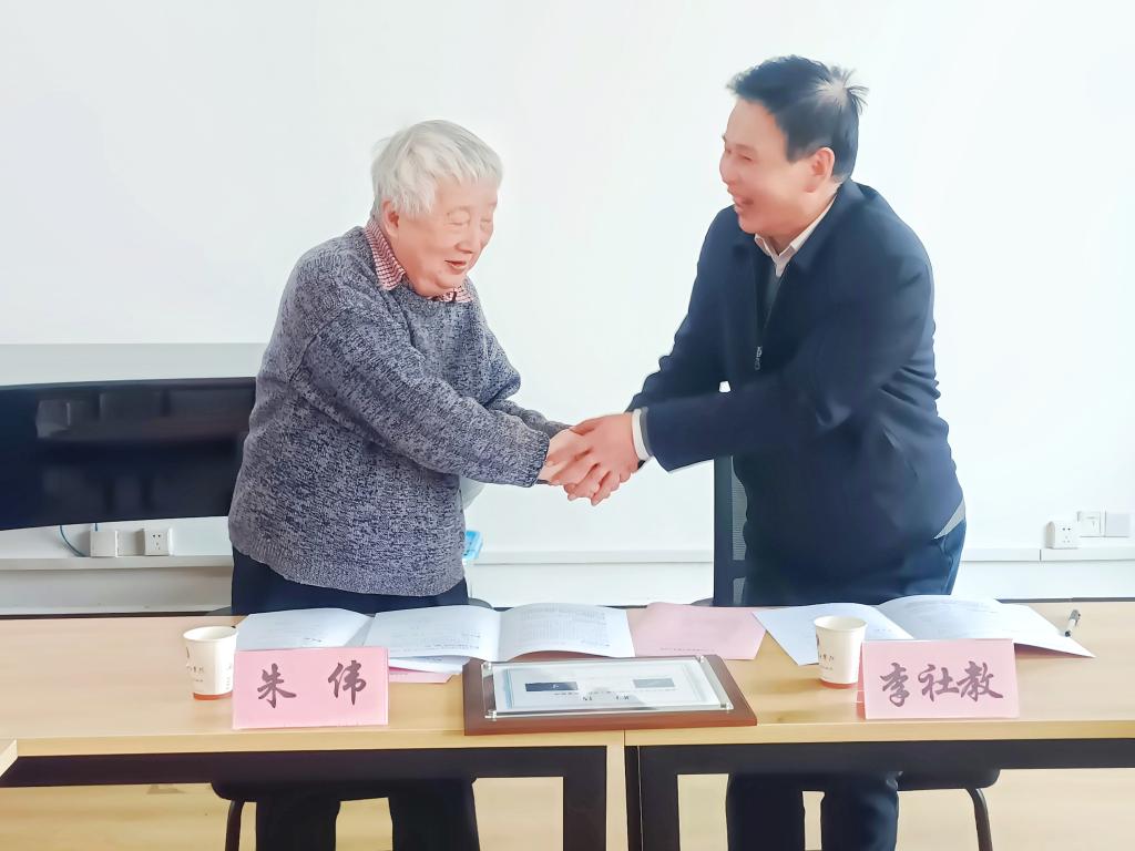李社教校长代表学校与朱伟教授签约,并向朱伟教授颁发聘书。李社教向朱伟教授加盟基础物理研究中心表示热烈欢迎,对朱伟教授五十年如一日热衷于基础物理研究表示由衷钦佩。李社教表示,大学需要科学精神的传承,希望年轻的科研工作者以朱伟教授为榜样,潜心科学研究,做出原创性成果。