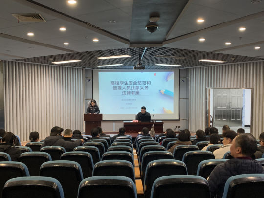本网消息 12月10日下午,在T2图书馆报告厅,永利官网法治办公室与学生工作部联合举办法治讲座。此次讲座由学校法律顾问杜若律师作报告,党政办公室副主任李琴主持。各学院分管学生工作副书记、辅导员,各单位法治联络员,后保处、保卫处以及体育课部工作人员听取了报告。
