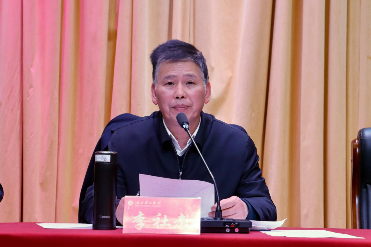 李社教在主持会议时要求,要提高政治站位,确保思想统一,深刻领会习近平总书记关于党的纪律建设的重要论述,认真贯彻习近平总书记考察湖北重要讲话精神,准确把握学校党委对全面从严治党工作的部署和要求,切实把思想和行动统一到党中央决策部署、省委工作要求和学校党委具体部署上来。要强化责任担当,确保言行一致,各二级党组织要认真履行全面从严治党主体责任、党总支部书记要严格落实“第一责任人”责任、班子成员要切实担负起“一岗双责”,做到知责、担责、履责。校纪检监察机构要强化全面从严治党监督责任,督促推动学校各级党组织坚决贯彻全面从严治党战略方针,把严的要求贯彻到管党治党全过程。要狠抓作风建设,确保严字当头,严格落实中央八项规定及其实施细则精神,把严的基调、严的措施、严的氛围长期坚持下去,对享乐主义、奢靡之风露头就打,严肃查处违规吃喝、组织或参与违规打牌和赌博问题,推动全校干部职工强化纪律意识、规矩意识、程序意识,不断提升干事创业精气神。