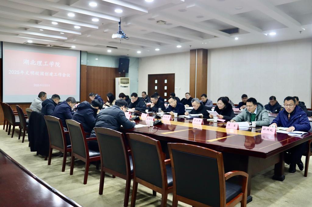 张方胜对文明校园创建工作提出要求。一是要提高政治站位,统一思想。文明校园创建工作是树立良好社会形象的重要标志。我们要深入学习贯彻习近平文化思想和习近平总书记关于教育的重要论述,进一步统一思想、凝聚共识,深刻认识文明校园创建工作的重要性和必要性,提升文化育人实效,努力把学校建设成为培养中国特色社会主义事业合格建设者和可靠接班人的摇篮,推动中华优秀传统文化创造性转化、创新性发展的高地,传播科学文化和建设中华民族现代文明的殿堂。二是要突出问题导向,强化治理。文明校园建设是“六个理工”建设中不可或缺的重要内容,全校师生员工要强化思想引领、夯实文明校园建设根基,打造特色品牌、提升文明校园建设品质;要主动担当作为,共同擦亮“湖北省文明校园”这块金字招牌,推进精神文明建设守正创新,让文明校园建设工作再上新台阶,为创建全国文明校园打下坚实基础。三是要对照“六好”标准,提质增效。文明校园创建工作,是一项系统性、综合性、群众性工程,涵盖学校党的建设、思政工作、教育教学、行政管理、后勤服务、队伍建设和文化建设等各方面,是一场需要全体师生员工共同参与、久久为功的“文明接力”。校属各部门要结合各自工作职责,对照“六好”标准持续发力,将文明校园创建工作的各项任务与2025年工作计划结合起来,融入日常工作中去。要做好宣传发动,层层动员,充分调动师生参与文明校园创建工作的积极性和主动性,营造人人重视、人人参与、人人尽责的良好氛围,努力开创学校精神文明建设的新局面。