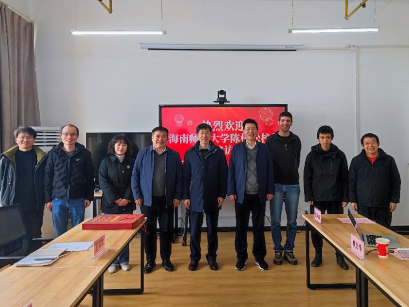 本网消息 3月8日上午,海南师范大学校长陈相松来永利官网基础物理研究中心访问交流。校长李社教接待陈相松校长一行。国际交流与合作处副处长李雅颖、意大利科学家Tomasso Morresi及基础物理研究中心成员参加了此次活动。活动由数理学院院长余宏生主持。