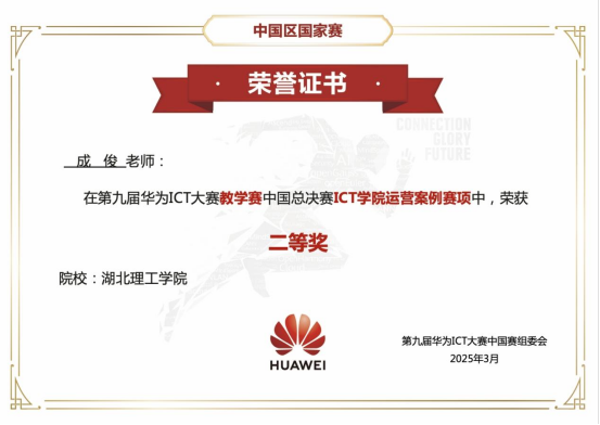 本网消息 3月8日,第九届华为ICT大赛教学赛中国总决赛在华为全球培训中心(杭州)举行。计算机学院教师成俊创作的案例《校企协同四对接,课证共融育英才——网络工程实践教学体系改革》,从全国60支参赛团队中脱颖而出,荣获“ICT学院运营案例赛项”二等奖。