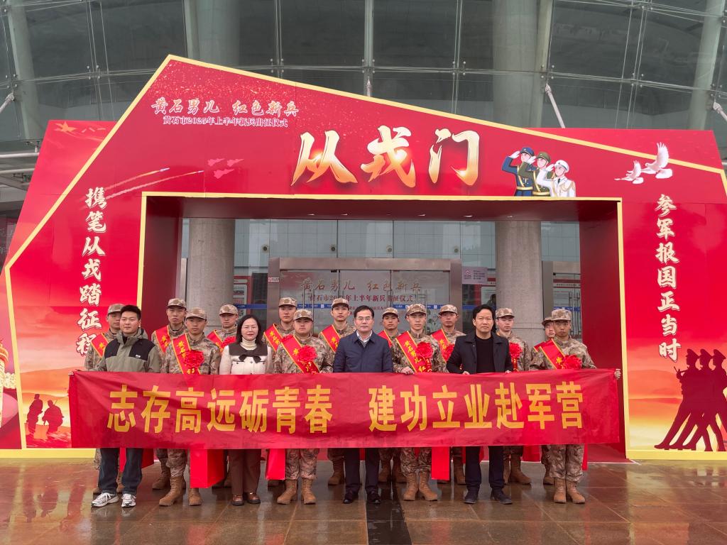本网消息 志存高远砺青春,建功立业赴军营。3月14日上午,黄石市2025年上半年新兵出征仪式在湖北师范大学水上莲花大剧院举行。校党委常委、副校长涂立桥,武装部部长吴涛,艺术学院副院长雷晓伟,武装部副部长马军军参加出征仪式。