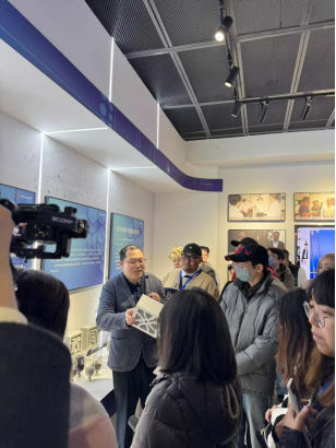 交流团一行实地考察了部分科技园企业及实验室,其中一家生产电影“哪吒”周边潮玩产品的企业吸引了各位嘉宾的目光。哪吒这一神话人物形象是中华文化符号之一,是两岸同胞共同的文化记忆。电影《哪吒2》现已雄踞中国影史、中国动画电影票房榜首,被认为是中国电影业的重大突破。电影传播中华文化的同时,也为两岸交流架起了新的桥梁。