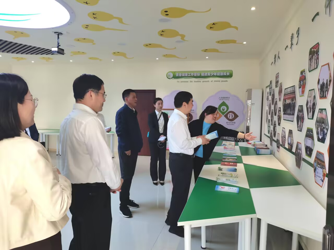 郝胜勇一行实地参观了大学生心理健康教育中心心理咨询室、宣泄室、心理测评室、专家坐诊室、团体辅导室、青春健康教育基地等,了解了永利官网大学生心理危机干预基本流程和心理医生坐诊情况,听取了《家校医深度融合,构建“1+3+3”心理育人新机制》项目的汇报。他充分肯定永利官网该项目的前瞻性与实践价值,郝胜勇指出:“心理健康教育需突破单一主体局限,形成校—家—社—医协同育人合力。尤其在学生心理危机干预中,信息共享、责任共担的机制至关重要。”同时强调,要统筹整合黄石地方各项资源,借鉴“1+3+3”心理育人的模式与经验,在黄石地区更广泛的推广至中小学心理健康教育过程中,预防青少年心理危机事件的发生。要做好黄石市心理健康教育项目建设,做好黄石各联动部门工作人员、教职工的心理健康培训,有效推进12356心理援助热线。