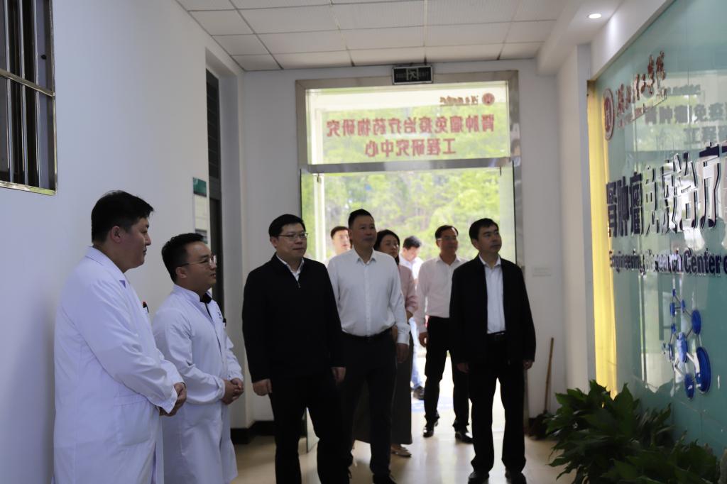 在肾脏疾病发生与干预湖北省重点实验室,刘治田一行与肾肿瘤靶向治疗药物研究青科突击队负责人程斌斌深入交流,详细了解青科突击队的团队建设、科研攻关、成果转化等方面的情况;在电子技术协会,刘治田一行听取了大学生科技创新团队参与“挑战杯”等学科竞赛的工作汇报;在湖北青创园,刘治田一行深入了解了大学生科技创新和大学生心理健康工作。