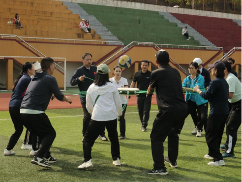 活动旨在丰富教职工文化生活,增强团队凝聚力,营造健康向上的校园氛围。本次教职工趣味运动会以“健康·协作·快乐·奋进”为主题,精心设计了集趣味性、协作性和竞技性于一体的八个比赛项目。既有考验默契配合的“同心鼓”“携手共进”,也有展现速度、力量与技巧的“30米迎面接力”“奋勇争先”“定点投篮”“一掷即中”,更有充满童趣的“侧翼竞速”“极速回环”等创意项目。