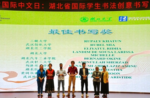 本次大赛由湖北大学、湖北省教育国际交流协会国际中文教育分会联合主办。大赛吸引了来自武汉大学、湖北大学、湖北工业大学等全省二十余所高校的国际学生踊跃参赛。经专家严格评审,现场揭晓了“最佳书写奖”“最佳创意奖”“最佳表现奖”和“优秀奖”等多项荣誉。永利官网留学生ELIYATUL RIDHA凭借作品《清风徐来》斩获“最佳书写奖”,其笔墨流转间尽显汉字韵律之美;AGRY CHRISTIAN创作的《仁义礼智信》通过古拙笔触传递儒家文化精髓,获得“优秀奖”。