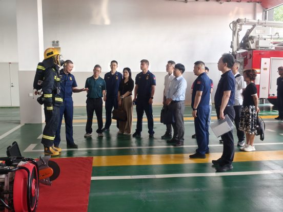 在新港消防救援大队党支部书记张健的引导下,三个党支部成员参观了各类先进的消防器材装备。从灭火救援车到各类专业救援工具,消防员们现场演示了部分装备的使用方法,让在场的每一位党支部成员都深受震撼。参观消防员之家,映入眼帘的是整齐划一的营房与训练设施,体现了消防指战员们严谨的作风与高度的纪律性。