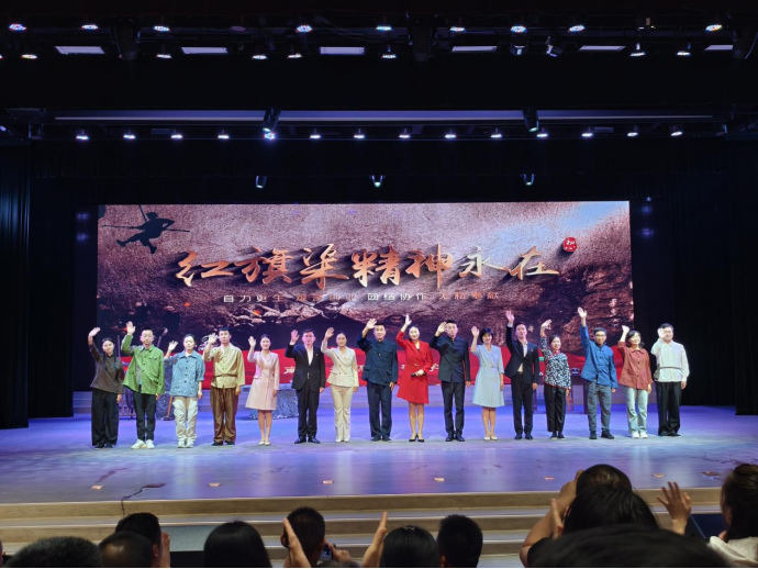 在情景教学环节,参培人员集体观看话剧《红旗渠》,学员姜礼朋、方中玉还被选为群众演员参与演绎林县人民劈开太行山引来漳河水的艰辛历史。