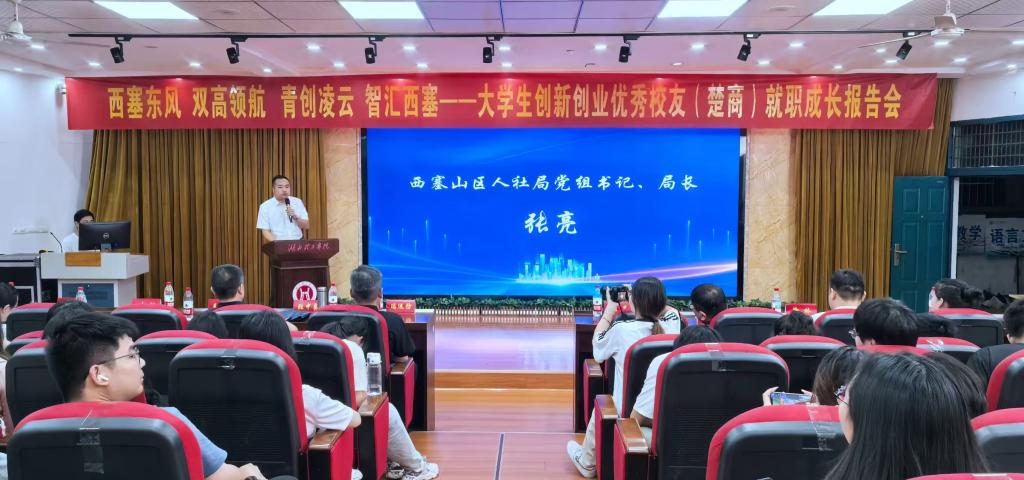 本网消息 5月15日晚,永利集团88304官网招就处、学工部、师范学院联合西塞山区人社局,在外国语学院113报告厅举办“西塞东风·双高领航 青创凌云·智汇西塞”——大学生创新创业优秀校友就职成长报告会。活动承载着政府、高校和企业对青年学子就业创业的深切关怀与殷切期望。学校党委常委、副校长冯运仿出席报告会。出席报告会的还有黄石市人事考试院副院长张中良,西塞山区人社局党组书记、局长张亮,西塞山区人社局党组成员、公共就业和社会保险服务中心主任綦慧敏,永利集团88304官网党委宣传部常务副部长王定兴、招生和就业处处长罗建军、外国语学院党总支书记占赢、师范学院党总支书记郭栋、招生和就业处副处长董永辉、师范学院方红教授等西塞山区和学校相关部门领导和嘉宾。