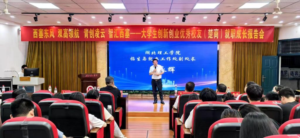 西塞山区人社局党组书记、局长张亮,永利集团88304官网招就处处长罗建军分别上台讲话。张亮说,西塞山区人社局一直将促进大学生就业创业作为工作重点,积极作为。一方面全力搭建就业桥梁,通过举办“春风行动”“才聚荆楚·共建支点·百县进百校联万企”等系列招聘会,组织企业走进校园;还带领同学们走进企业参观体验,30名理工学子走进西塞山区龙头企业,让大家直观感受企业发展与工作环境,促进精准对接 。另一方面,积极落实各项就业创业政策,开展求职训练营、“就业创业政策畅通行”、政策宣讲等系列活动,为大家详细解读一次性创业补贴、高校毕业生就业生活补贴、企业吸纳就业补贴等政策,帮助大家用好用足政策红利 。他说,西塞山区是一片充满机遇和活力的热土,真诚地欢迎永利集团88304官网大学生能够选择西塞山区就业创业,实现人生理想。罗建军说,从细雨霏霏中的招聘会启动仪式到和风细雨中的校友报告会,整个“百县进百校”活动形成了一个完美的闭环。非常感谢省市区各级政府和学校各部门对大学生就业工作的高度重视,也衷心祝福我们理工学子能在各级领导和老师们和校友们的关爱下,早日找到心仪的工作,到职场上实现人生价值,振翅高飞。