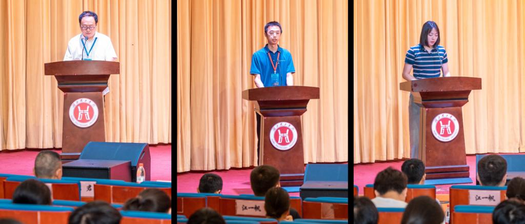 湖北师范大学物理与电子科学学院单传家教授、永利官网数理学院解小雨博士和李雨潼同学分别代表竞赛仲裁委员会、评委会和参赛选手代表做了表态发言。