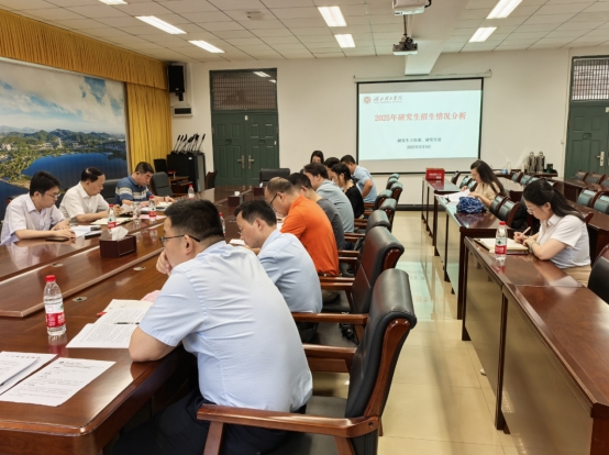 研究生处处长马学军汇报了下一阶段研究生人才培养及招生工作安排部署。研究生处副处长陶敏汇报2025年研究生招生工作总结及研究生培养工作进展情况。三个专业硕士点牵头教学院院长陶晶、张家泉、苏振宏分别汇报了研究生培养和招生工作存在的问题及改进措施。研究生处相关工作人员解读了研究生培养有关制度文件。 (通讯员 何志聪)