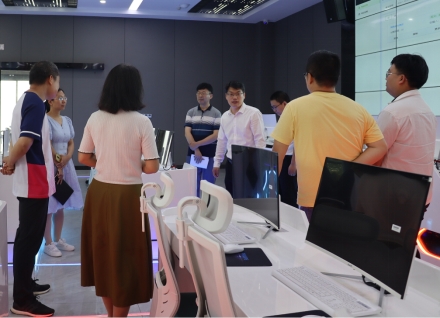 胡国珍一行先后走访了熊宏伟教授领衔的基础物理研究中心和冯胜教授领衔的智能感知与目标识别光电实验室,实地察看了各团队的研究环境、实验设施,并与团队成员们进行了亲切座谈。