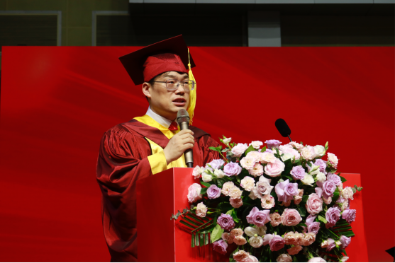 化学与化工学院教师谢小银作为教师代表发言。他赠予毕业生三个行囊:磁湖水般的赤子心、银杏叶般的生长力、明德楼月光般的师者守望。未来有掌声也有荆棘,愿毕业生把每一次跌倒都变成重新站立的支点,写下属于奋斗者的诗篇,并表示无论毕业生是翱翔九天的雄鹰,还是滋养春泥的落叶,母校都会在磁湖的柔波里,收藏所有的光荣与梦想。祝福毕业生此去星辰大海,归来仍是理工人。