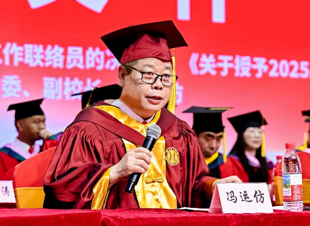 典礼伊始,全体起立奏唱国歌。冯运仿宣读《关于表扬2025届优秀毕业生的决定》《关于聘任2025届校友工作联络员的决定》《关于授予2025届本科毕业生学士学位的决定》。校领导们为荣获优秀毕业生称号的代表们颁发荣誉证书,赠送纪念品。