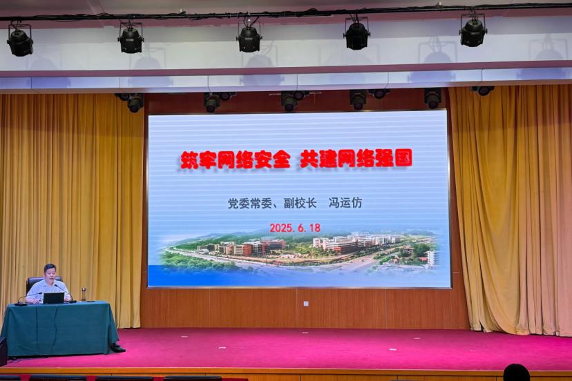 6月18日下午,副校长冯运仿以“筑牢网络安全,共建网络强国”为题,从当前网络科技发展的趋势和我国网络安全面临的形势两方面,阐述了习近平总书记关于网络强国的重要思想。他强调青年大学生要深刻认识网络安全对国家发展的战略意义,要不断提升防范技能和法治素养,将维护网络安全的理念融入专业学习和未来职业规划,为建设网络强国和实现中华民族伟大复兴贡献青春力量。