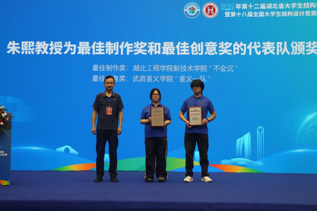 湖北工程职业学院朱熙教授为最佳制作奖和最佳创意奖代表队颁奖。