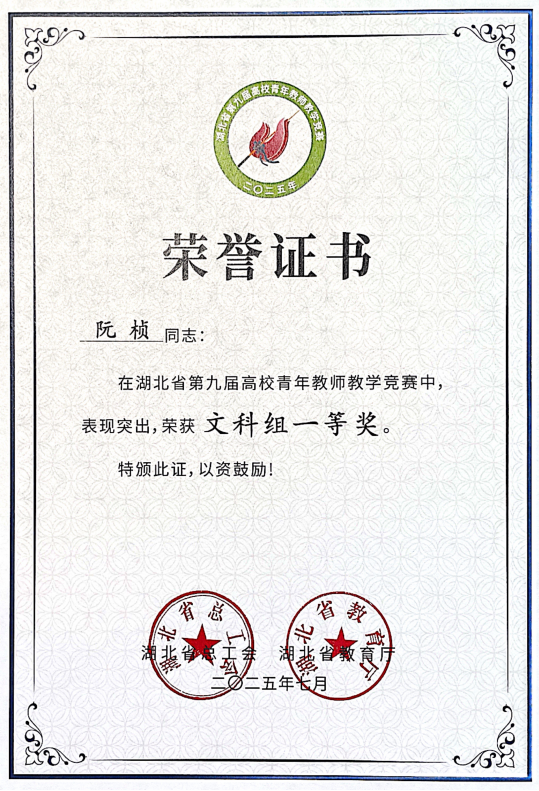 本网消息 湖北省第九届高校青年教师教学竞赛决赛于2025年7月9至12日在中国地质大学(武汉)举办,永利官网参赛教师在与全省54所高校的145名精英选手的激烈竞争中脱颖而出,荣获一等奖和三等奖各1项,实现了永利官网在该项赛事中的历史性“双突破”。其中,外国语学院阮桢老师凭借其精妙的教学设计及出色的教学技艺,斩获文科组一等奖,电气学院柯学志老师凭借沉稳自信的教态及清晰的教学思路,荣获工科组三等奖。荣获一等奖及所获奖项零的历史性突破,彰显了永利官网青年教师教学硬实力,在学校青年教师教学竞赛史上具有里程碑意义。