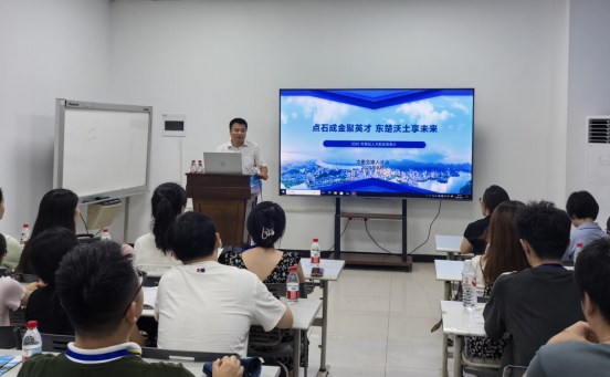 新教师们走进黄石东贝电气股份有限公司,近距离观察企业的生产流程、企业文化建设以及人才需求情况。黄石市人才办科长杨帅详细解读黄石市人才政策并与教师们深入座谈。