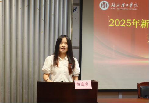 环境科学与工程学院黄永霞老师作为新入职教师代表发言。黄永霞老师表达了对教育事业的热爱憧憬以及加入学校大家庭的喜悦荣幸,并从“立德铸魂、精进本领、锤炼师表”三个方面承诺将以此次研修为契机,认真学习、积极实践,尽快实现角色转变,努力成为一名合格且优秀的教师,为学校的发展贡献自己的力量。