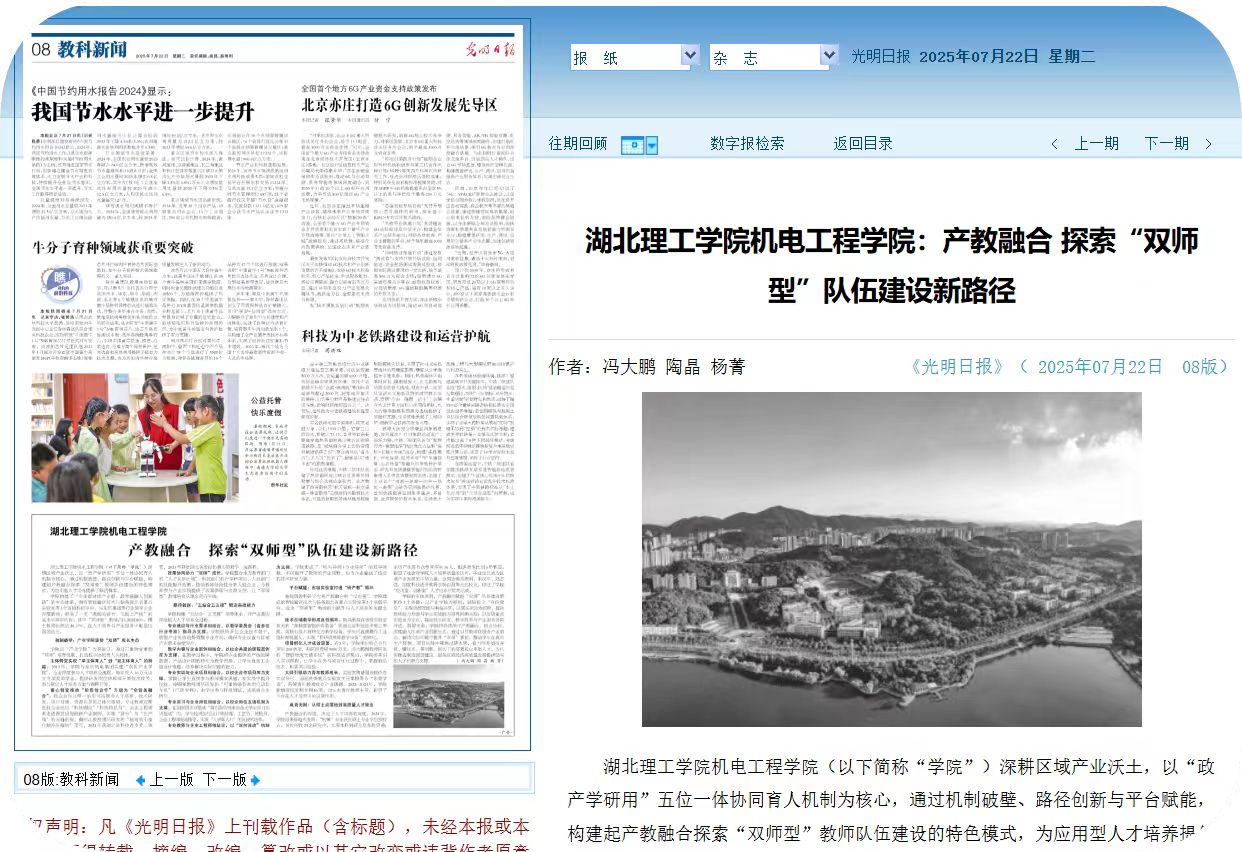 本网消息 暑期,《光明日报》刊发文章《产教融合 探索“双师型”队伍建设新路径》,宣传永利官网机电工程学院“双师型”教师队伍建设的特色及成果。