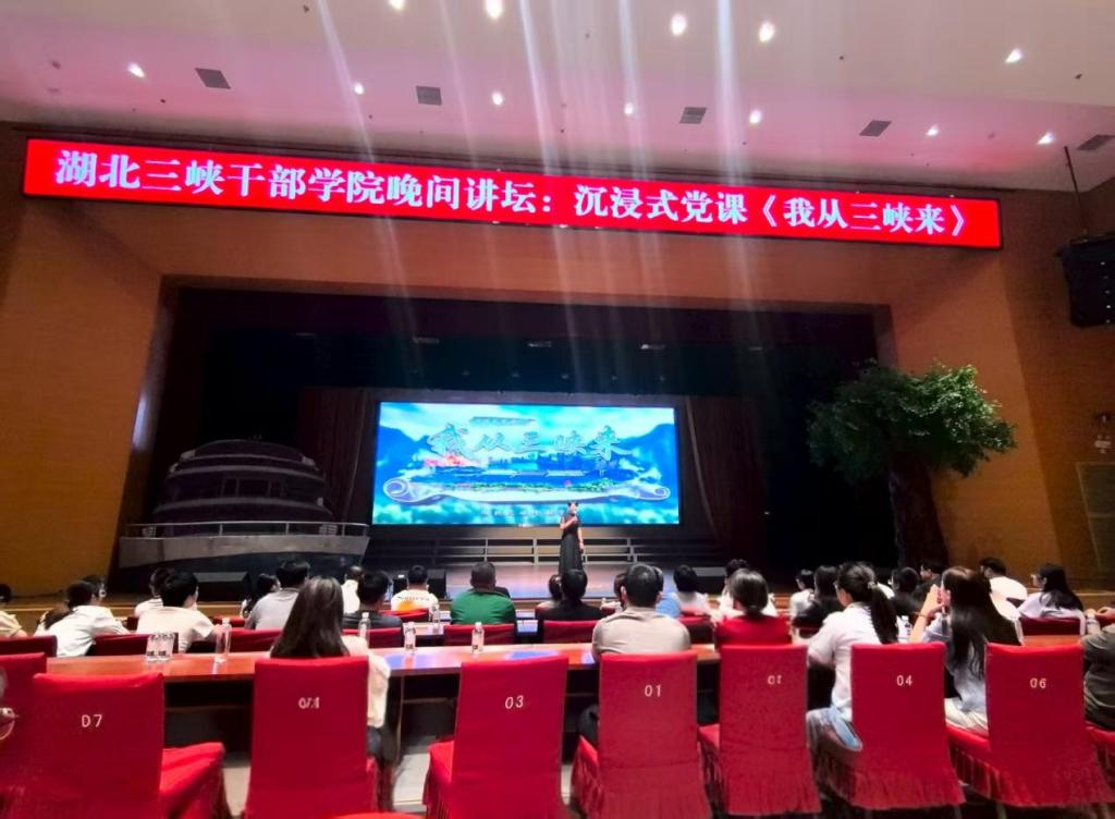培训期间,一场别开生面的沉浸式党课《我从三峡来》在求是报告厅精彩上演,通过情景再现、角色扮演等形式,生动展现了三峡地区的历史变迁和党员干部的奋斗历程。通过老一辈三峡建设者的讲授、红色信物的展示、建设者事迹的呈现等,让学员全方位、多角度地了解三峡建设的艰辛与辉煌。