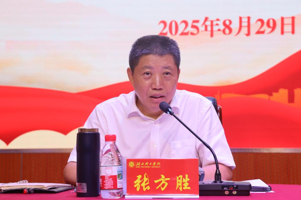 就做好新学期各项工作,张方胜提出四点意见。一是旗帜鲜明讲政治,把稳办学方向之舵。坚持以习近平新时代中国特色社会主义思想为指导,深入学习贯彻党的二十大、党的二十届三中全会精神和中央、省委最新学习要求,进一步强化政治担当,持续筑牢思想根基,在衷心拥护“两个确立”、忠诚践行“两个维护”上见思想、见行动、见实效。巩固拓展整改成果,建立健全长效机制,形成监督合力,确保中央八项规定精神在学校落地生根。二是聚焦中心强党建,筑牢立德树人之根。聚焦立德树人根本任务,深入贯彻教育、科技、人才“三位一体”战略部署,促进党建与学校事业发展深度融合,以高水平党建引领推动学校高质量发展。充分发挥学校获国家、省级“标杆院系”“样板支部”“双带头人工作室”的示范作用,全面调动和激发干部队伍积极性、主动性、创造性,坚持师德师风第一标准、加强师德师风培养、坚持师德违规“零容忍”、提高教师学科能力和学科素养、提升教师教书育人能力、切实维护教师合法权益。三是谋划布局抓落实,汇聚团结奋斗之力。2025年是学校“十四五”收官与“十五五”谋划的承启之年,全校教职员工需以更高政治站位深入研判,提前谋划“十五五”规划,强化责任落实,激励担当作为,形成人心齐、干劲足、事业兴的良好局面。四是守住底线保稳定,夯实管党治党之基。全面压实管党治党政治责任,建立健全安全防范机制。锲而不舍落实中央八项规定精神,推动全面从严治党持续向纵深发展,在拧紧责任链条、强化纪律作风、筑牢安全底线上下更大功夫。