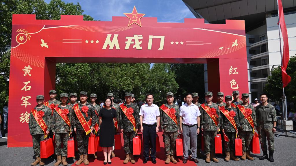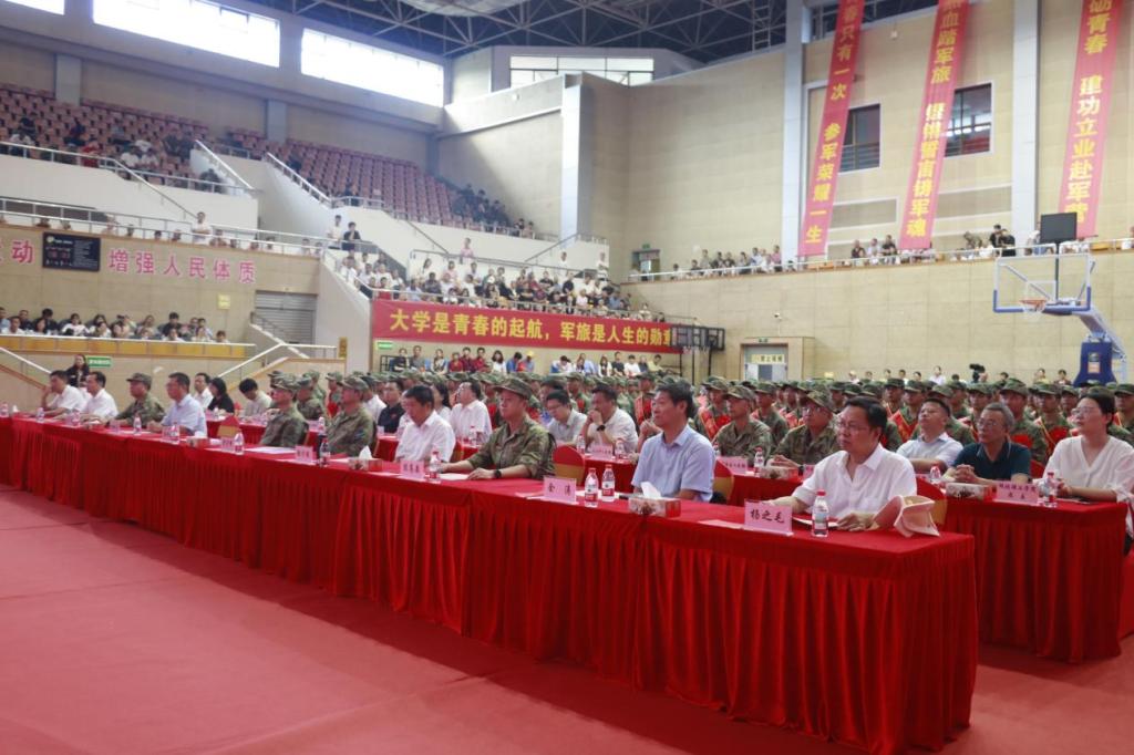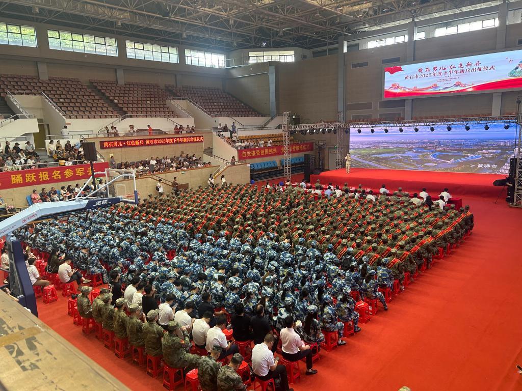 本网消息 9月15日,黄石市2025年下半年新兵出征仪式在永利集团88304官网东门体育馆举行。此次活动由黄石市人民政府征兵办公室主办,永利集团88304官网承办。市委常委、军分区大校司令员贾宇峰,军分区大校政治委员董相奎,军分区大校副司令员陈高泉,市征兵办副主任、市政府副秘书长徐新勇,军分区动员处处长王震;永利集团88304官网党委书记张方胜、党委副书记涂立桥,湖北师范大学党委副书记、副校长余涛,湖北师范大学文理学院党委副书记杨之毛,湖北工程职业学院党委委员、副校长陈彪彪;大冶市、阳新县、黄石港区、西塞山区、下陆区、铁山区人武部领导及预定新兵;永利集团88304官网、湖北师范大学、湖北师范大学文理学院、湖北工程职业学院相关校领导和武装部工作人员,永利集团88304官网征兵辅导员、学生代表及新兵家长参加出征仪式。