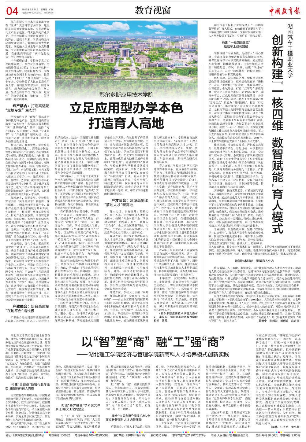 本网消息 9月21日,《中国教育报》刊载永利官网经济与管理学院文章《以“智”塑“商” 融“工”强“商”——永利集团88304官网经济与管理学院新商科人才培养模式创新实践》。