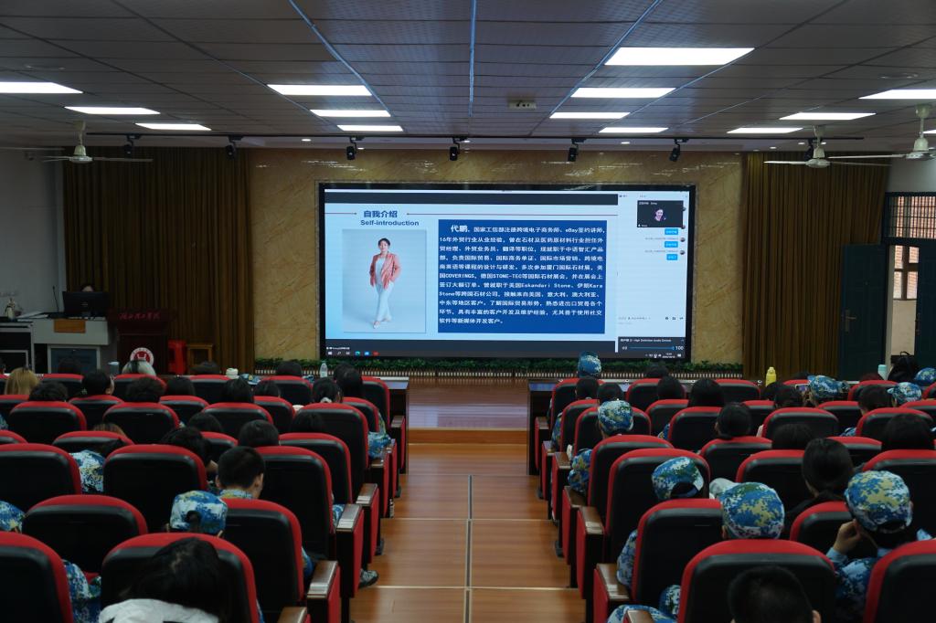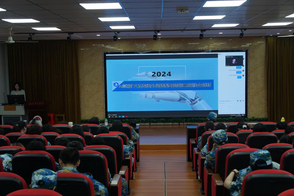 讲座中,代鹏以“AI赋能下传统外贸转型与跨境电商融合创新”为主题,详细介绍了传统外贸、跨境电商、短视频和跨境直播等三种外贸形式。她讲解了传统外贸的工作基本流程,并从模式与环节、主题方向、运营方向以及物流方向等方面深刻剖析了跨境电商和传统外贸的区别,既加深了同学们对传统贸易模式的认识,也让同学们了解到当今市场上商品交易形式的新变化。