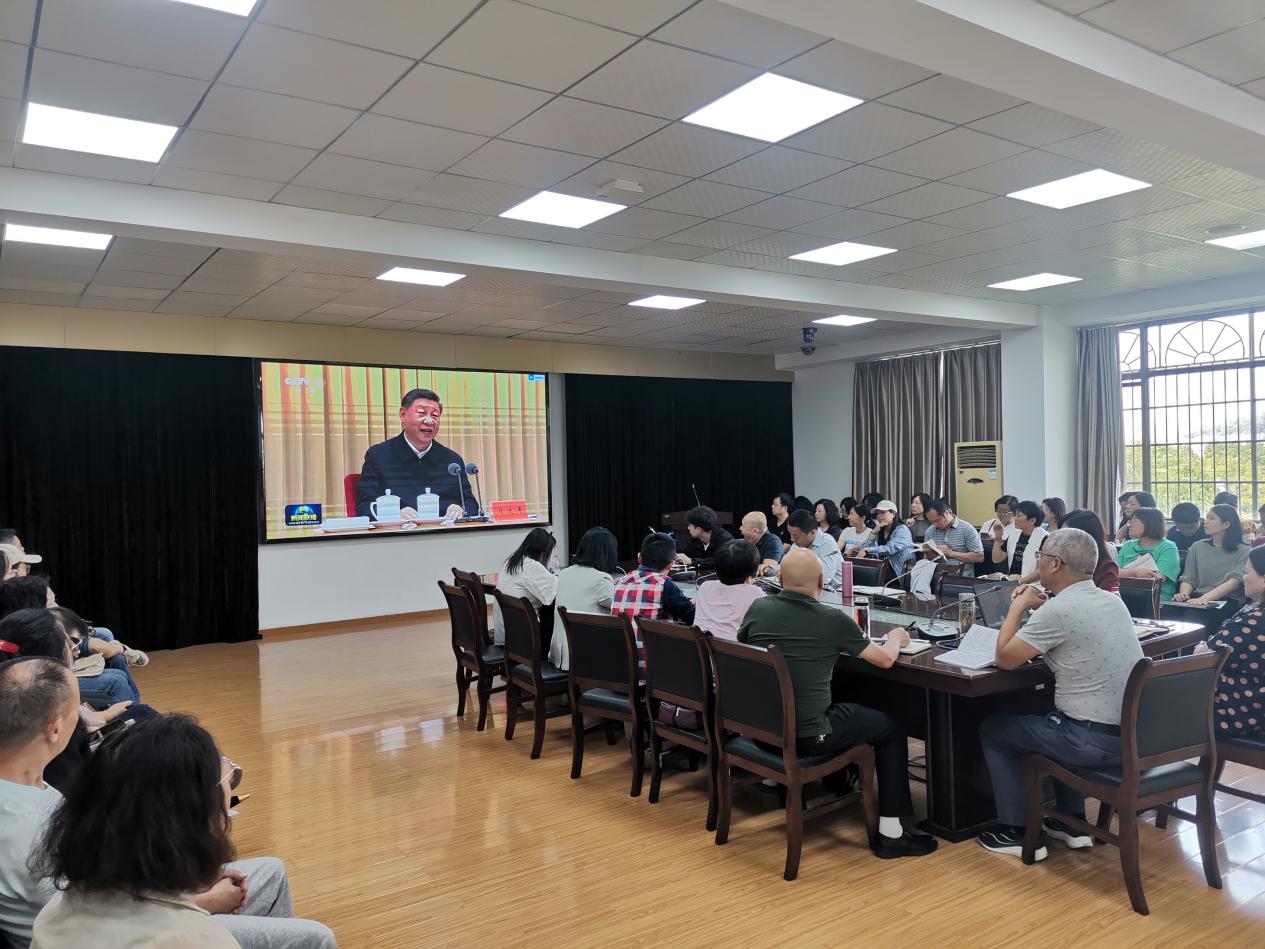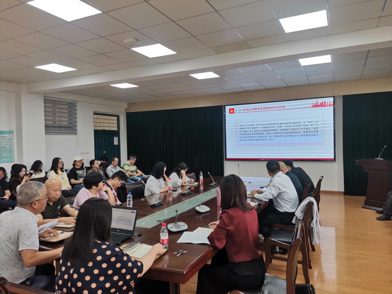 本网消息 10月12日下午,外国语学院组织全体教职工专题学习“教育家精神”及全国教育大会精神。党总支书记占赢做了题为“大力弘扬教育家精神,争做新时代大先生”辅导报告。
