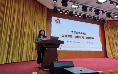 讲座伊始,李翮博士以“适应大学生活”为出发点,从个人经历出发,结合自身专业与社会需求,深入浅出地分析了新生们面对新生活遇到的问题,她建议刚踏入大学校园的同学们发掘个人兴趣,做好未来个人职业生涯规划,树立正确求职目标,并鼓励当代青年坚持热爱与奋斗,踏实与自律,拒绝内耗。