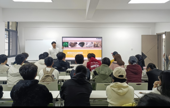 如果说“历史文化是城市的灵魂”,那黄石之魂就是矿冶文化。在课堂上,王定兴老师以介绍精美的石头为导入,向学生展开讲述了黄石的矿冶文化、社区文化和悠久的历史。他提到,亿万年的地质变迁,造就了黄石地区丰富的矿产资源。石头里含有各种各样的宝贝,已探明有矿产78种,黄石是一座真正意义上的矿冶之城。王定兴老师详细介绍了黄石的铜、铁、石灰石、煤,讲述了铜绿山的故事、铁山的故事和太阳石的故事等,向学生介绍了大冶铁矿旧址和汉冶萍煤铁厂矿旧址。最后,王定兴老师指出,矿冶文化彰显了城市文化之美,铸造了城市文化之魂;是一个时代的产业记忆,具有强烈的文化认知度;是促进城市转型的助推剂;更是我市“着力打造晶彩黄石名片,推动文化产业高质量发展”的基础。