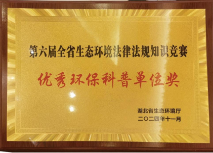 本网消息 11月15日,第六届湖北省生态环境法律知识竞赛决赛在武汉圆满落幕,来自全省各地的259支队伍、51530名参赛者共同参与了这场生态环境法律知识的盛宴。绿色天使志愿服务大队代表环境科学与工程学院荣获第六届湖北省生态环境法律知识竞赛优秀环保科普单位,辅导员梅佳仪老师带队参加颁奖典礼。