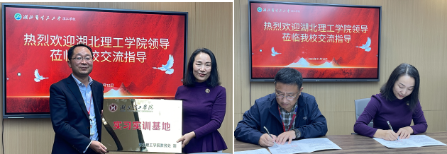陈君与冯朝签署了教育教学实习基地共建协议书。双方就学生顶岗实习、毕业生就业、实验室共建共享等方面进行了深入的交流沟通,并达成了共识。