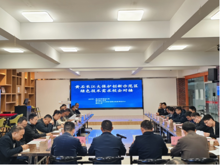 该研究中心占长林副教授介绍了黄石长江大保护创新示范区建设成效,发布了企业绿色技术需求,并详细介绍了黄石市支持绿色技术交易的相关政策。湖北林泰环境科技有限公司薛庆副总经理作为企业代表介绍了企业在绿色环保领域的产业发展和技术需求,湖北大学李海波教授介绍了湖北大学黄石产学研合作创新中心在长江大保护创新示范区建设、产学研合作等方面所开展的工作。参会企业代表与教授团队围绕长江保护创新示范区建设进行了充分的交流互动。