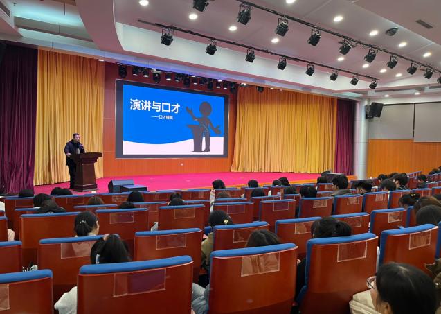 仪式开始,主持人郭照藏思简要介绍培训班概况。接着,黄健老师讲解演讲与口才知识,包括含义、心理准备及提升技巧,并现场示范,其精彩演讲赢得掌声。随后,主持人向黄健老师致谢。最后,就业创业部部长张晓璐发言,表达对学员的期待与支持。