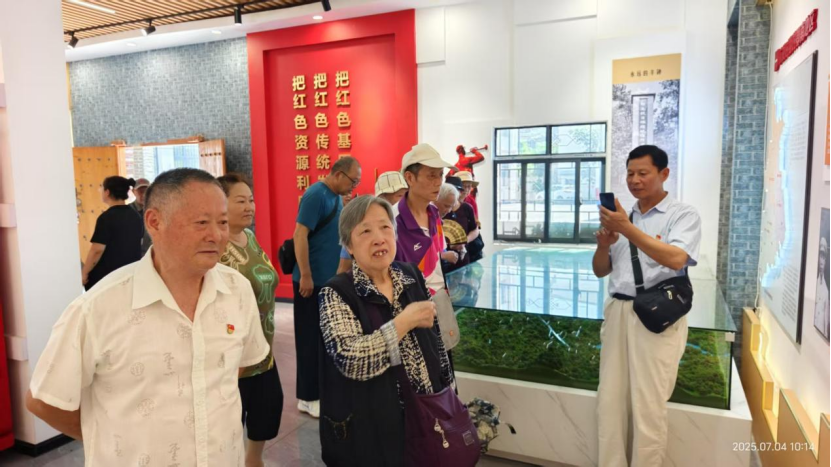 7月4日,老同志们满怀敬意地踏入位于鄂州市鄂城区沙窝乡麻羊垴的鄂州沙窝红色教育基地,这里曾是鄂南抗日根据地的指挥中心。在庄严的纪念牌下,山林环绕,党旗飘扬,由九十岁高龄的老党员汪德忠领誓,退休党员们重温入党誓词,铿锵有力的誓言回荡在山谷之间,激发了每一位党员的爱国热情与使命感。通过参观珍贵的历史文物、感人的照片及聆听动人的革命故事,老同志们深刻体会到了那段波澜壮阔的革命历史,心灵受到了极大的洗礼与升华。随后,老党员们来到乔街,参观了新修建的吴都乔街,并制作了参观视频。